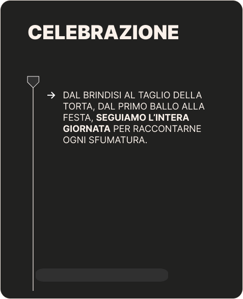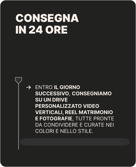 siamo il primo studio di Wedding Content Creators in Italia, specializzato in contenuti autentici, dinamici e social-ready, pronti da condividere subito dopo l'evento.